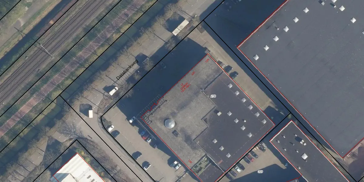 Het perceel waarop Databankweg 12-H staat heeft een oppervlakte van 5607 m². Dit is een zeer groot perceel. De perceeloppervlakte wordt geregistreerd door het Kadaster. Gedetailleerde informatie over de maten van dit perceel kunt u vinden in het rapport Kadastrale kaart met maatvoering van Databankweg 12-H.