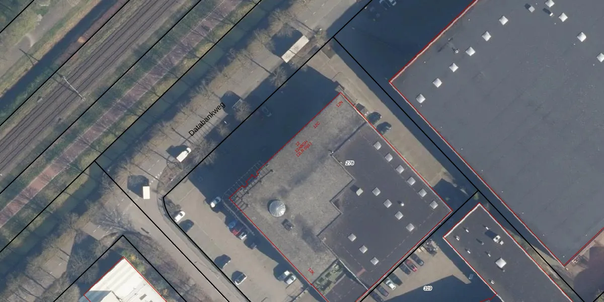 Het perceel waarop Databankweg 12-L staat heeft een oppervlakte van 5607 m². Dit is een zeer groot perceel. De perceeloppervlakte wordt geregistreerd door het Kadaster. Gedetailleerde informatie over de maten van dit perceel kunt u vinden in het rapport Kadastrale kaart met maatvoering van Databankweg 12-L.