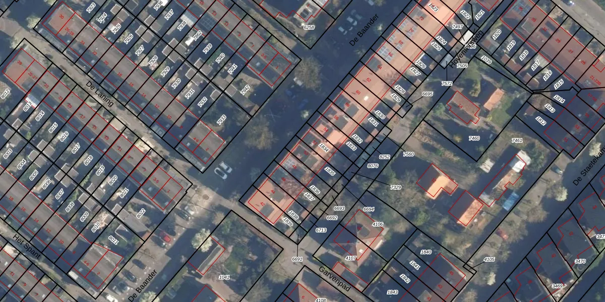 Het perceel waarop De Baander 50 staat heeft een oppervlakte van 111 m². Dit is een middelgroot perceel. De perceeloppervlakte wordt geregistreerd door het Kadaster. Gedetailleerde informatie over de maten van dit perceel kunt u vinden in het rapport Kadastrale kaart met maatvoering van De Baander 50.