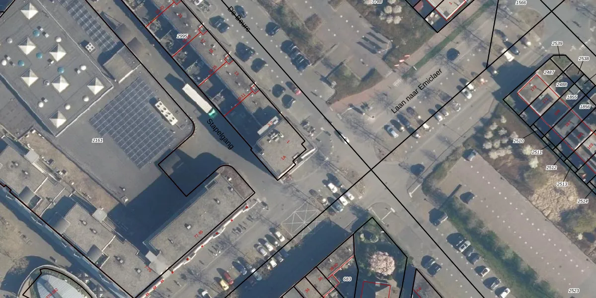 Het perceel waarop De Beurs 1 staat heeft een oppervlakte van 1616 m². Dit is een zeer groot perceel. De perceeloppervlakte wordt geregistreerd door het Kadaster. Gedetailleerde informatie over de maten van dit perceel kunt u vinden in het rapport Kadastrale kaart met maatvoering van De Beurs 1.