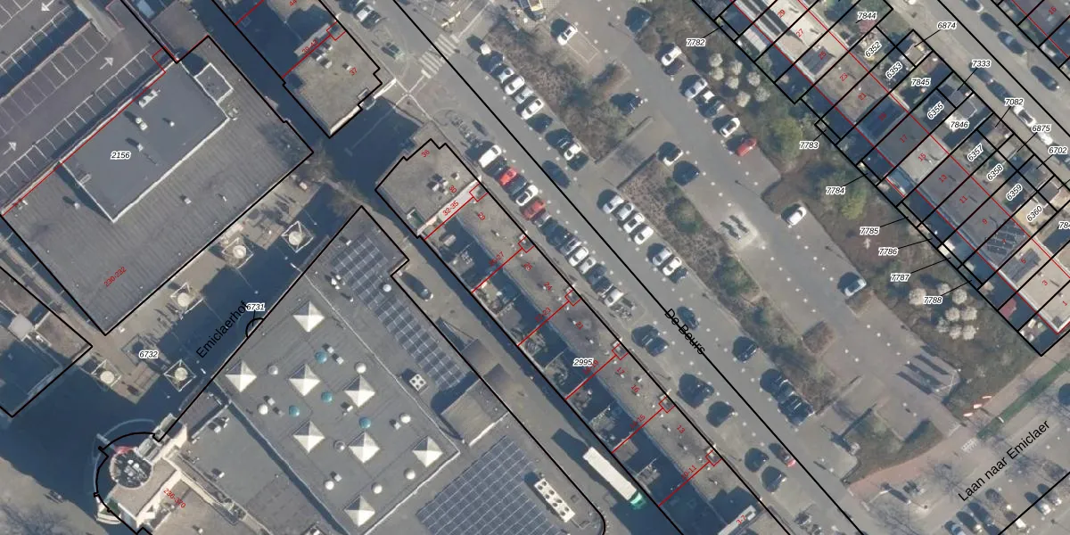 Het perceel waarop De Beurs 25 staat heeft een oppervlakte van 1616 m². Dit is een zeer groot perceel. De perceeloppervlakte wordt geregistreerd door het Kadaster. Gedetailleerde informatie over de maten van dit perceel kunt u vinden in het rapport Kadastrale kaart met maatvoering van De Beurs 25.