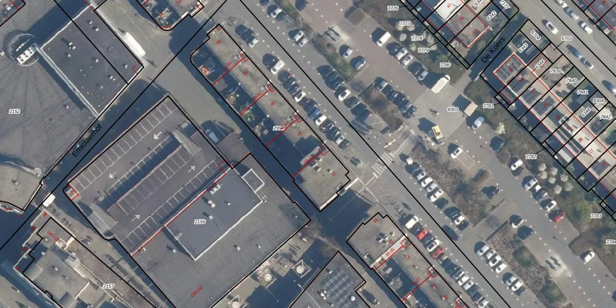 Het perceel waarop De Beurs 43 staat heeft een oppervlakte van 994 m². Dit is een groot perceel. De perceeloppervlakte wordt geregistreerd door het Kadaster. Gedetailleerde informatie over de maten van dit perceel kunt u vinden in het rapport Kadastrale kaart met maatvoering van De Beurs 43.