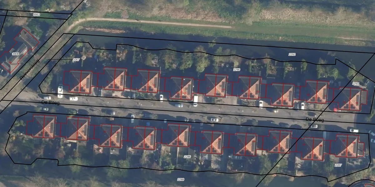 Het perceel waarop De Boeg 15 staat heeft een oppervlakte van 4095 m². Dit is een zeer groot perceel. De perceeloppervlakte wordt geregistreerd door het Kadaster. Gedetailleerde informatie over de maten van dit perceel kunt u vinden in het rapport Kadastrale kaart met maatvoering van De Boeg 15.