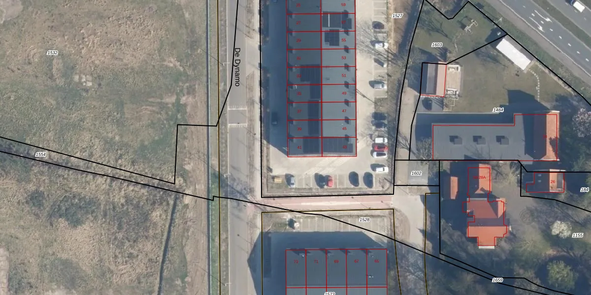 Het perceel waarop De Dynamo 41 staat heeft een oppervlakte van 4445 m². Dit is een zeer groot perceel. De perceeloppervlakte wordt geregistreerd door het Kadaster. Gedetailleerde informatie over de maten van dit perceel kunt u vinden in het rapport Kadastrale kaart met maatvoering van De Dynamo 41.
