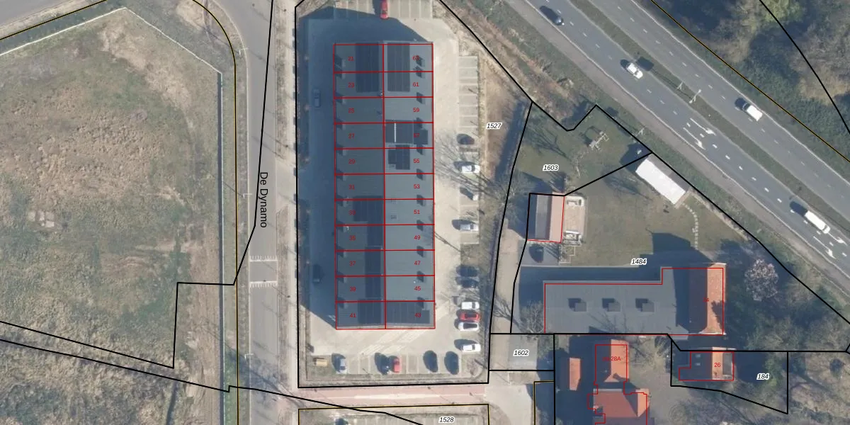 Het perceel waarop De Dynamo 51 staat heeft een oppervlakte van 4445 m². Dit is een zeer groot perceel. De perceeloppervlakte wordt geregistreerd door het Kadaster. Gedetailleerde informatie over de maten van dit perceel kunt u vinden in het rapport Kadastrale kaart met maatvoering van De Dynamo 51.