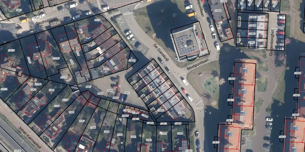 Het perceel waarop De Ganskuijl 13 staat heeft een oppervlakte van 121 m². Dit is een middelgroot perceel. De perceeloppervlakte wordt geregistreerd door het Kadaster. Gedetailleerde informatie over de maten van dit perceel kunt u vinden in het rapport Kadastrale kaart met maatvoering van De Ganskuijl 13.