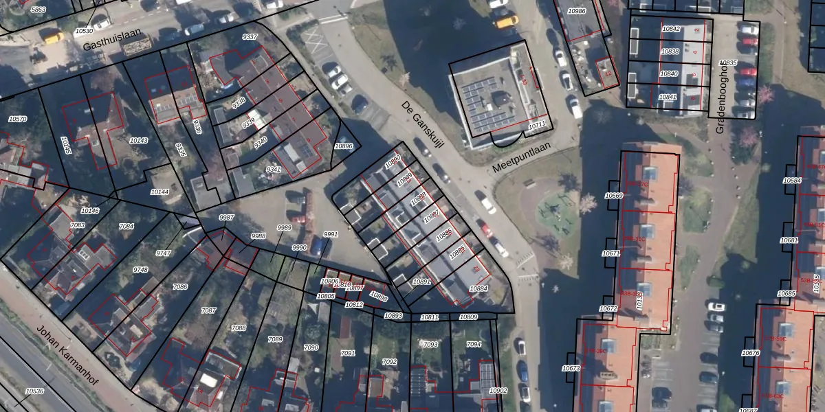 Het perceel waarop De Ganskuijl 15 staat heeft een oppervlakte van 121 m². Dit is een middelgroot perceel. De perceeloppervlakte wordt geregistreerd door het Kadaster. Gedetailleerde informatie over de maten van dit perceel kunt u vinden in het rapport Kadastrale kaart met maatvoering van De Ganskuijl 15.