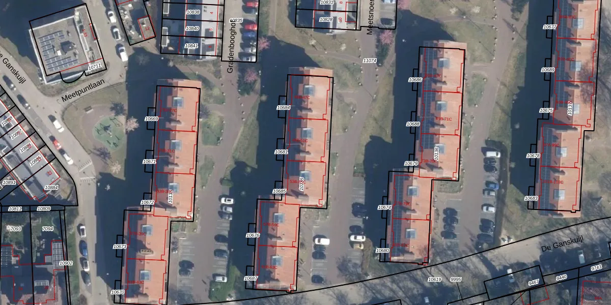 Het perceel waarop De Ganskuijl 51-C staat heeft een oppervlakte van 1140 m². Dit is een zeer groot perceel. De perceeloppervlakte wordt geregistreerd door het Kadaster. Gedetailleerde informatie over de maten van dit perceel kunt u vinden in het rapport Kadastrale kaart met maatvoering van De Ganskuijl 51-C.