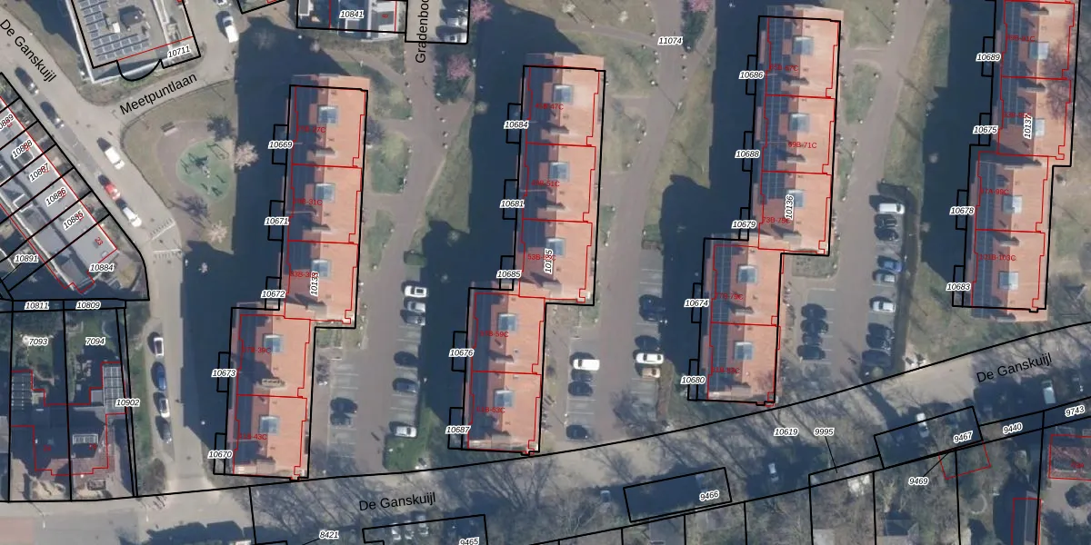 Het perceel waarop De Ganskuijl 55-B staat heeft een oppervlakte van 1140 m². Dit is een zeer groot perceel. De perceeloppervlakte wordt geregistreerd door het Kadaster. Gedetailleerde informatie over de maten van dit perceel kunt u vinden in het rapport Kadastrale kaart met maatvoering van De Ganskuijl 55-B.