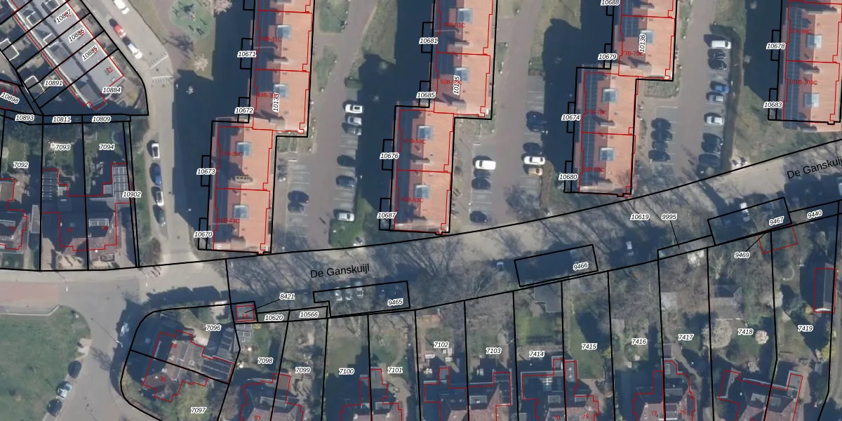 Het perceel waarop De Ganskuijl 63-C staat heeft een oppervlakte van 1140 m². Dit is een zeer groot perceel. De perceeloppervlakte wordt geregistreerd door het Kadaster. Gedetailleerde informatie over de maten van dit perceel kunt u vinden in het rapport Kadastrale kaart met maatvoering van De Ganskuijl 63-C.