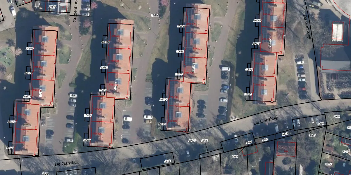 Het perceel waarop De Ganskuijl 77-C staat heeft een oppervlakte van 1140 m². Dit is een zeer groot perceel. De perceeloppervlakte wordt geregistreerd door het Kadaster. Gedetailleerde informatie over de maten van dit perceel kunt u vinden in het rapport Kadastrale kaart met maatvoering van De Ganskuijl 77-C.