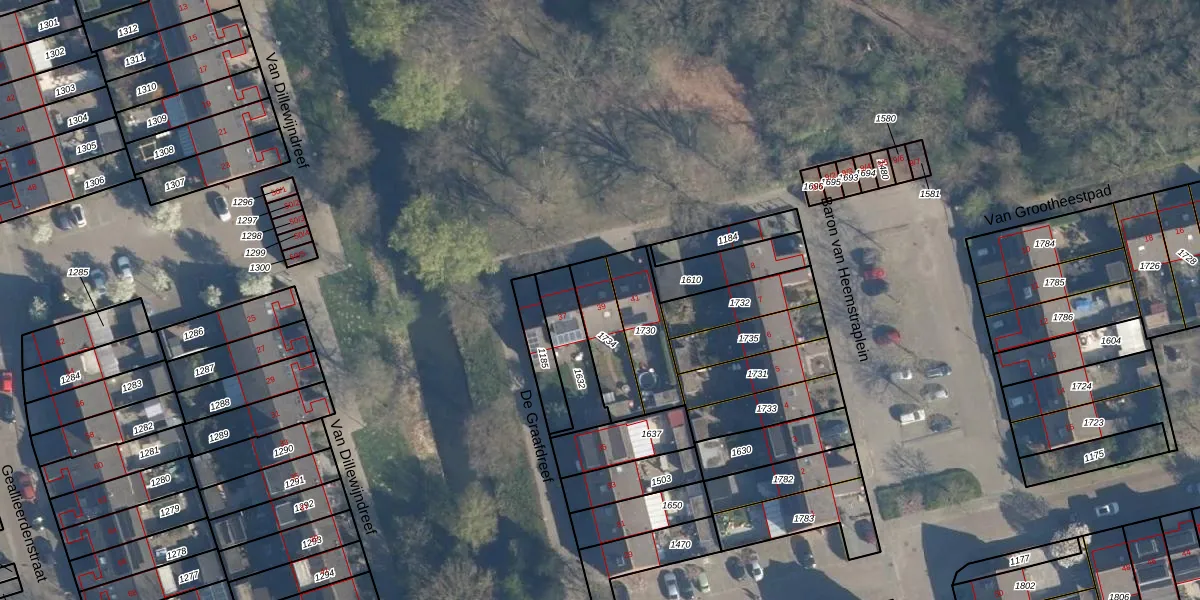 Gebruik de zoekbalk of klik op een perceel voor informatie over de adressen binnen dit perceel.