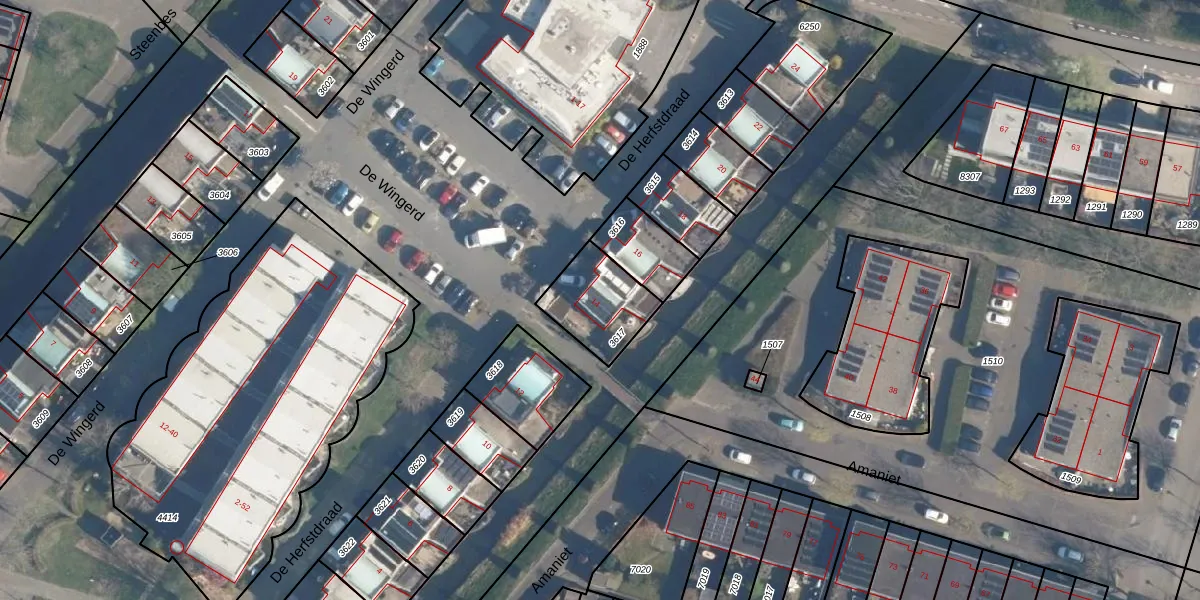 Gebruik de zoekbalk of klik op een perceel voor informatie over de adressen binnen dit perceel.