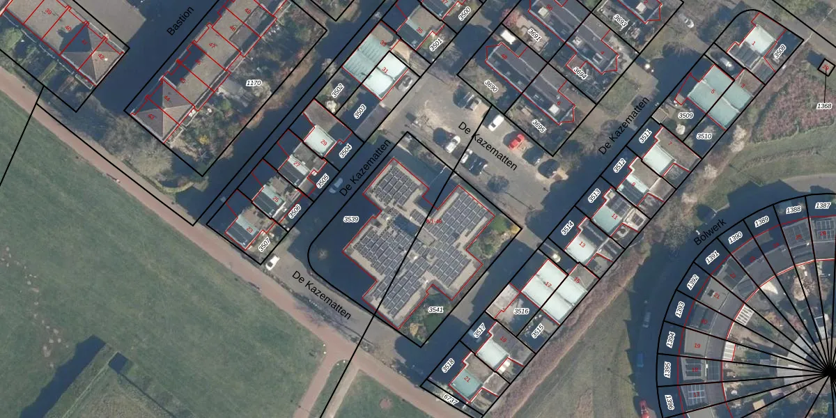 Het perceel waarop De Kazematten 22 staat heeft een oppervlakte van 720 m². Dit is een groot perceel. De perceeloppervlakte wordt geregistreerd door het Kadaster. Gedetailleerde informatie over de maten van dit perceel kunt u vinden in het rapport Kadastrale kaart met maatvoering van De Kazematten 22.