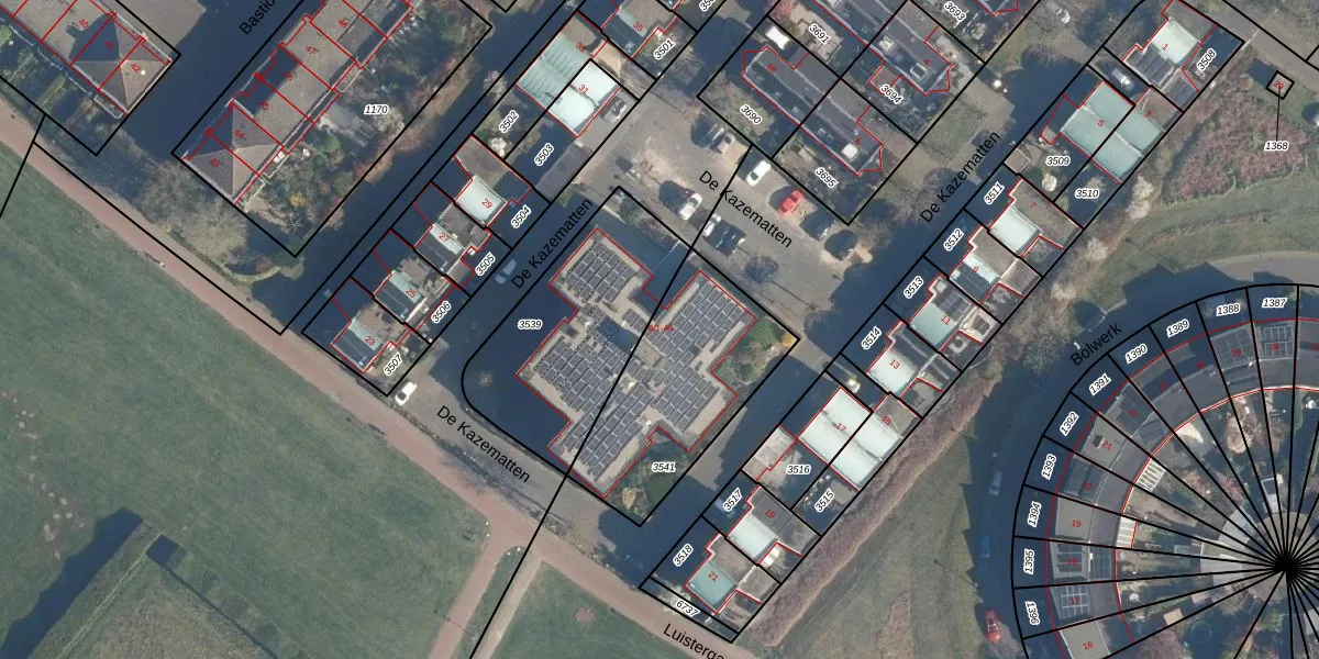 Het perceel waarop De Kazematten 34 staat heeft een oppervlakte van 675 m². Dit is een groot perceel. De perceeloppervlakte wordt geregistreerd door het Kadaster. Gedetailleerde informatie over de maten van dit perceel kunt u vinden in het rapport Kadastrale kaart met maatvoering van De Kazematten 34.