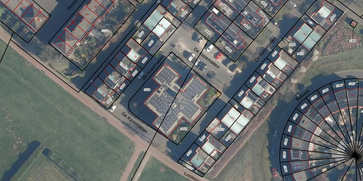 Het perceel waarop De Kazematten 46 staat heeft een oppervlakte van 675 m². Dit is een groot perceel. De perceeloppervlakte wordt geregistreerd door het Kadaster. Gedetailleerde informatie over de maten van dit perceel kunt u vinden in het rapport Kadastrale kaart met maatvoering van De Kazematten 46.