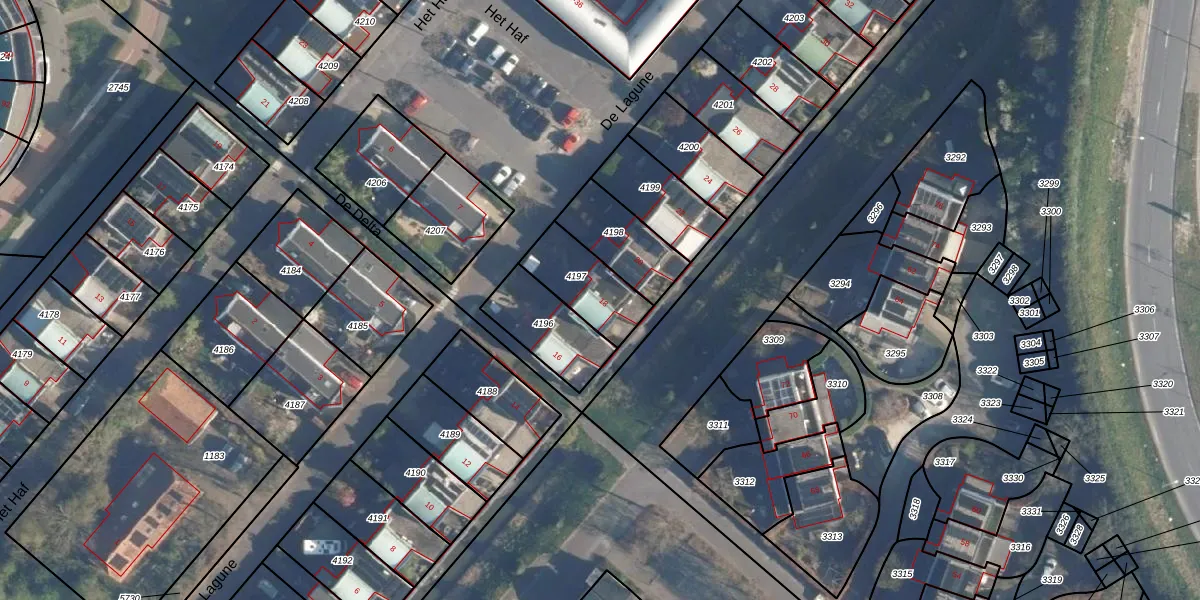 Het perceel waarop De Lagune 18 staat heeft een oppervlakte van 207 m². Dit is een middelgroot perceel. De perceeloppervlakte wordt geregistreerd door het Kadaster. Gedetailleerde informatie over de maten van dit perceel kunt u vinden in het rapport Kadastrale kaart met maatvoering van De Lagune 18.