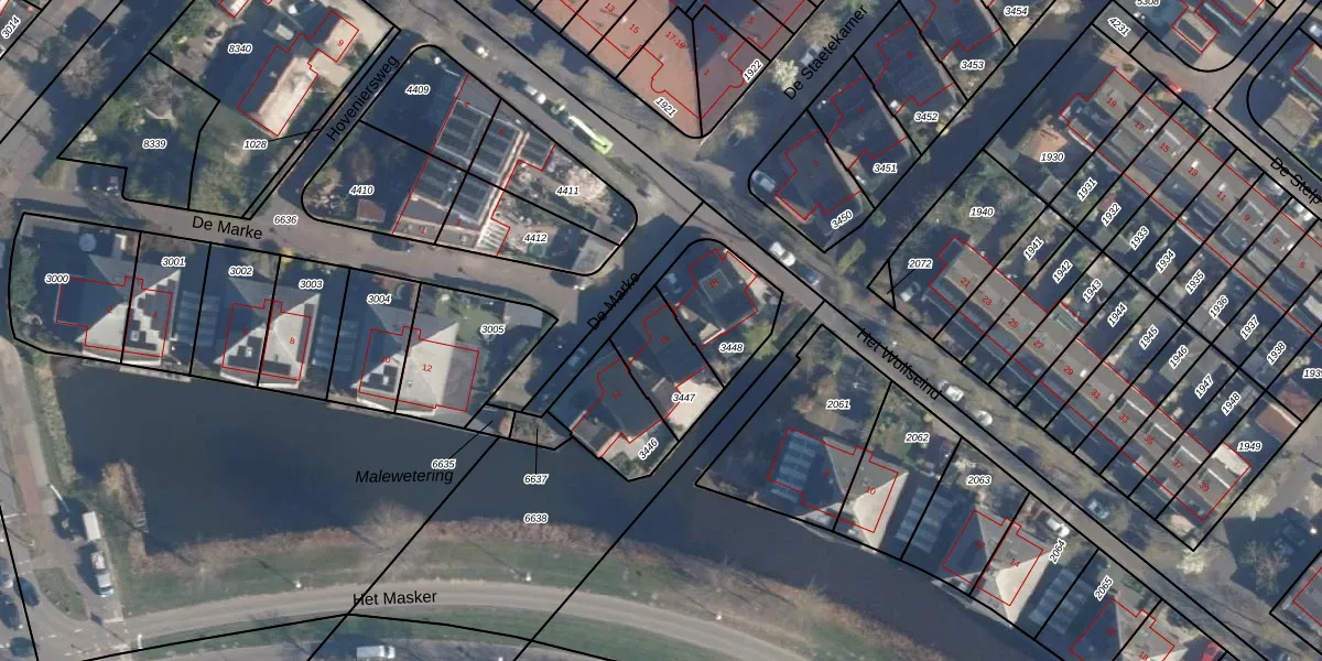 Gebruik de zoekbalk of klik op een perceel voor informatie over de adressen binnen dit perceel.