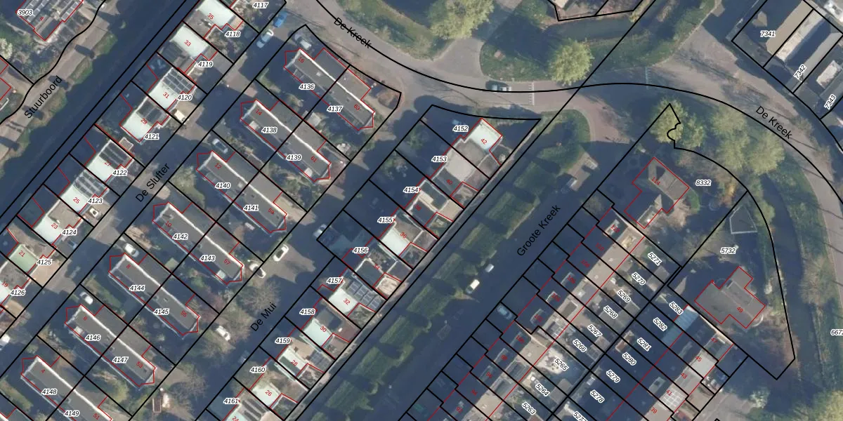 Gebruik de zoekbalk of klik op een perceel voor informatie over de adressen binnen dit perceel.