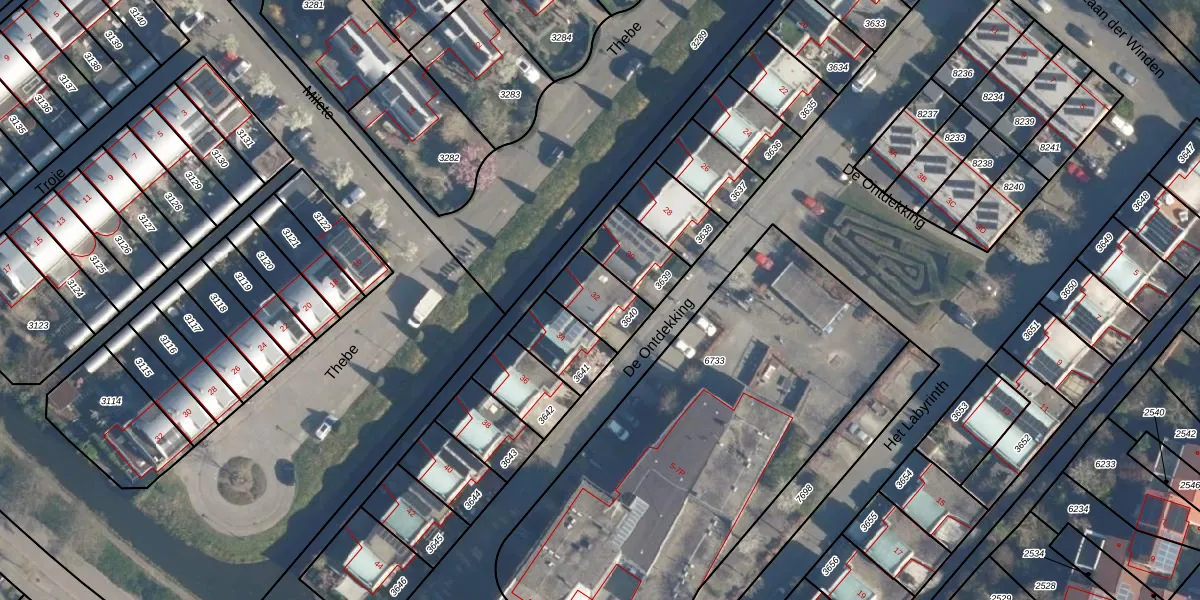 Gebruik de zoekbalk of klik op een perceel voor informatie over de adressen binnen dit perceel.