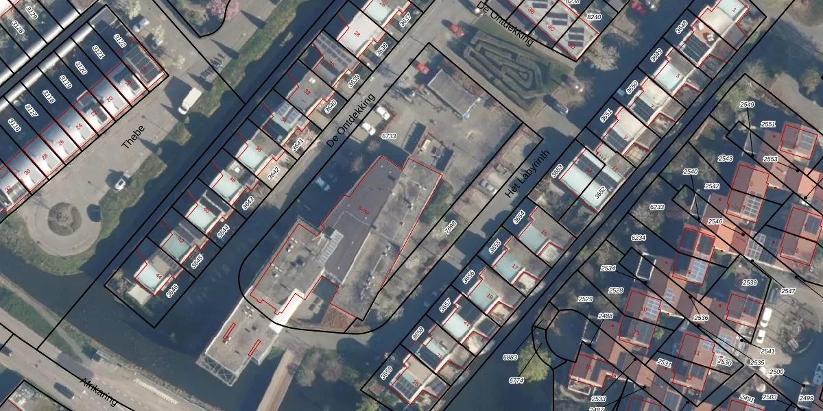 Het perceel waarop De Ontdekking 5-B staat heeft een oppervlakte van 2226 m². Dit is een zeer groot perceel. De perceeloppervlakte wordt geregistreerd door het Kadaster. Gedetailleerde informatie over de maten van dit perceel kunt u vinden in het rapport Kadastrale kaart met maatvoering van De Ontdekking 5-B.