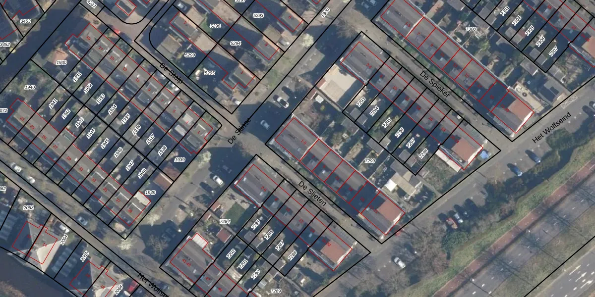 De Slieten 5 is gelegen op kadastraal perceel AMF00O7299. Deze kadastrale aanduiding is uniek en wordt gebruikt door het Kadaster om eigendomsrechten en andere zakelijke rechten vast te leggen. Het perceel maakt onderdeel uit van de kadastrale gemeente Amersfoort.