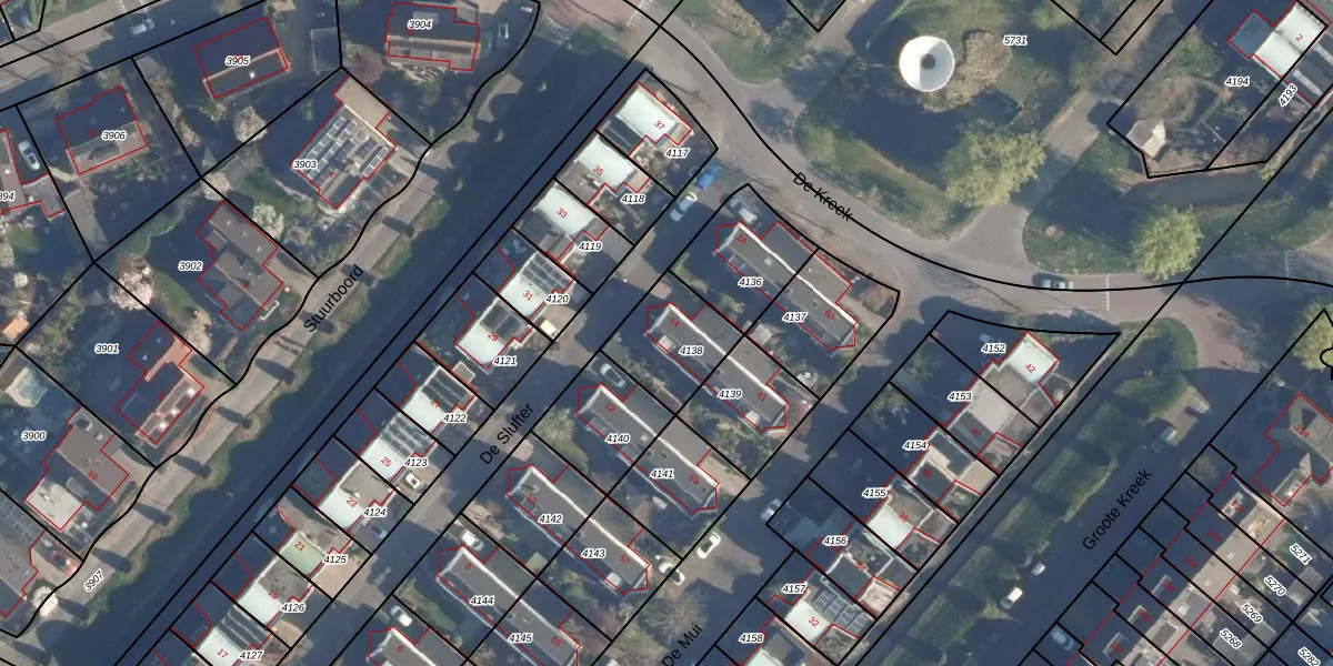 Gebruik de zoekbalk of klik op een perceel voor informatie over de adressen binnen dit perceel.