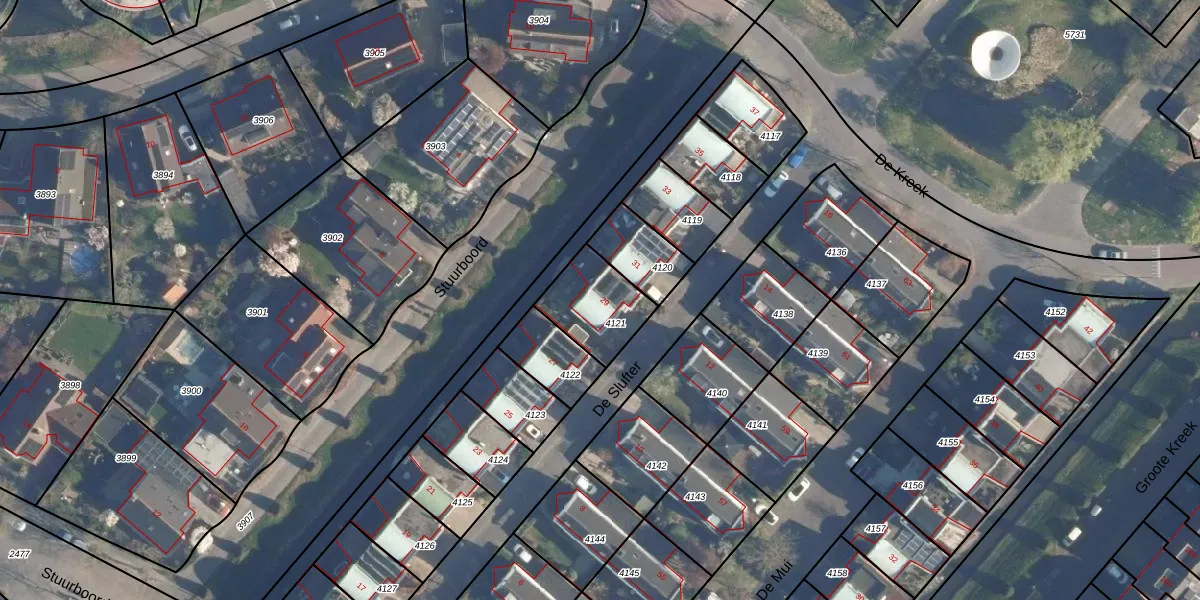 De Slufter 29 is gelegen op kadastraal perceel AMF00O4121. Deze kadastrale aanduiding is uniek en wordt gebruikt door het Kadaster om eigendomsrechten en andere zakelijke rechten vast te leggen. Het perceel maakt onderdeel uit van de kadastrale gemeente Amersfoort.