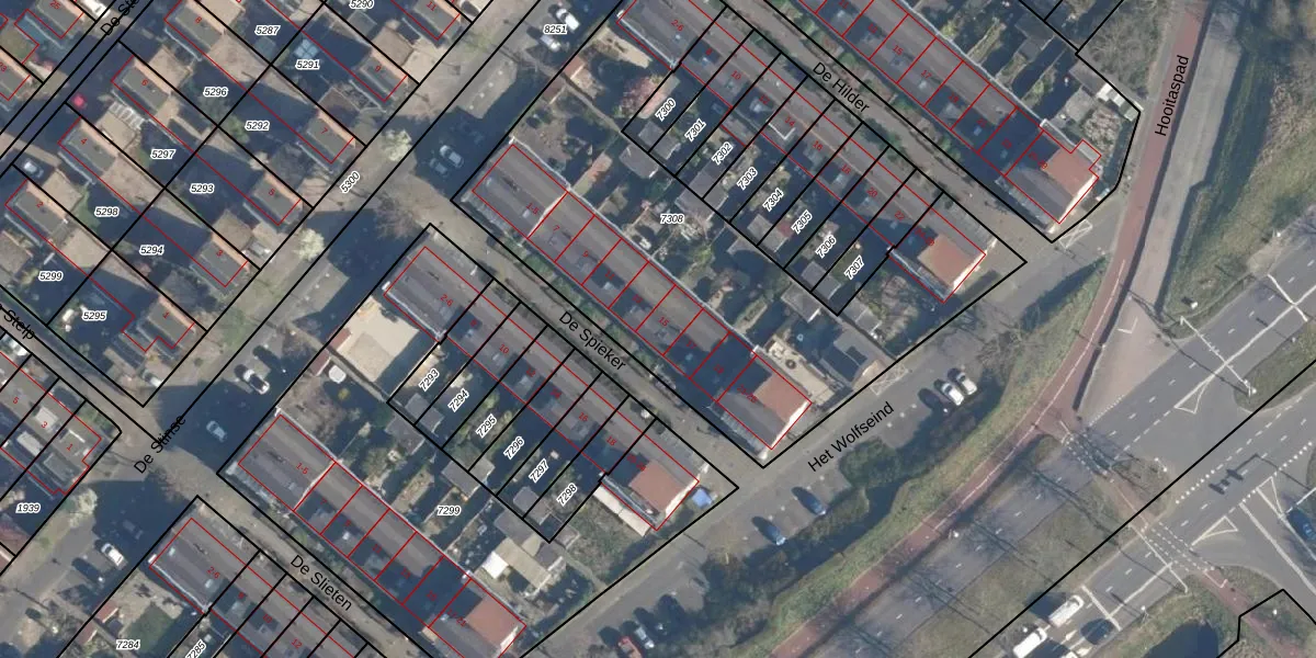 Het perceel waarop De Spieker 15 staat heeft een oppervlakte van 2306 m². Dit is een zeer groot perceel. De perceeloppervlakte wordt geregistreerd door het Kadaster. Gedetailleerde informatie over de maten van dit perceel kunt u vinden in het rapport Kadastrale kaart met maatvoering van De Spieker 15.