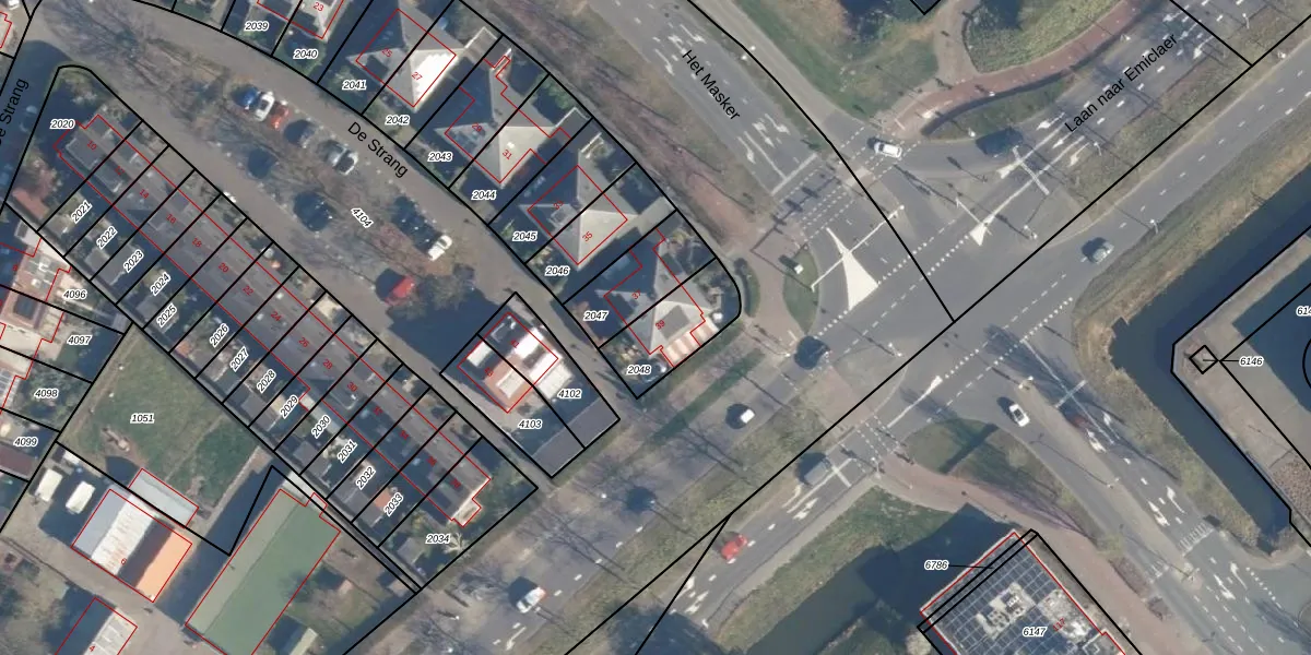 Gebruik de zoekbalk of klik op een perceel voor informatie over de adressen binnen dit perceel.