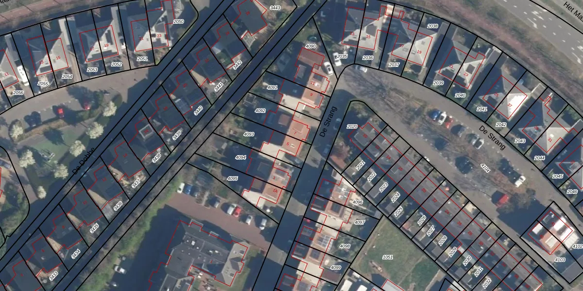 Het perceel waarop De Strang 5 staat heeft een oppervlakte van 277 m². Dit is een middelgroot perceel. De perceeloppervlakte wordt geregistreerd door het Kadaster. Gedetailleerde informatie over de maten van dit perceel kunt u vinden in het rapport Kadastrale kaart met maatvoering van De Strang 5.