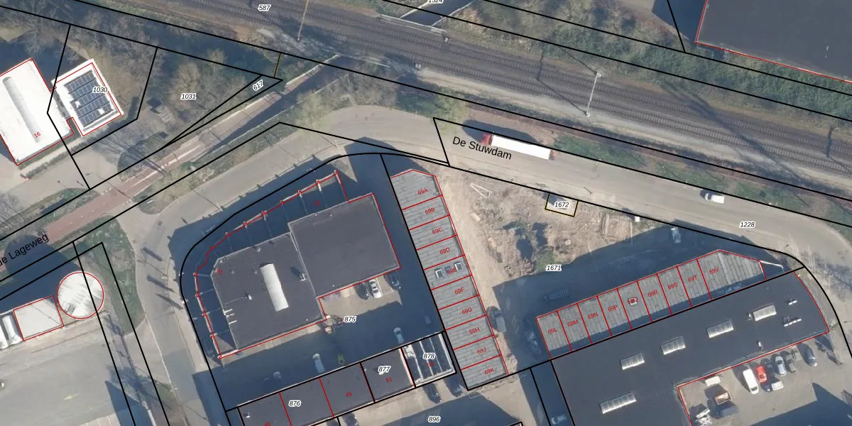 Het perceel waarop De Stuwdam 69-B staat heeft een oppervlakte van 2612 m². Dit is een zeer groot perceel. De perceeloppervlakte wordt geregistreerd door het Kadaster. Gedetailleerde informatie over de maten van dit perceel kunt u vinden in het rapport Kadastrale kaart met maatvoering van De Stuwdam 69-B.