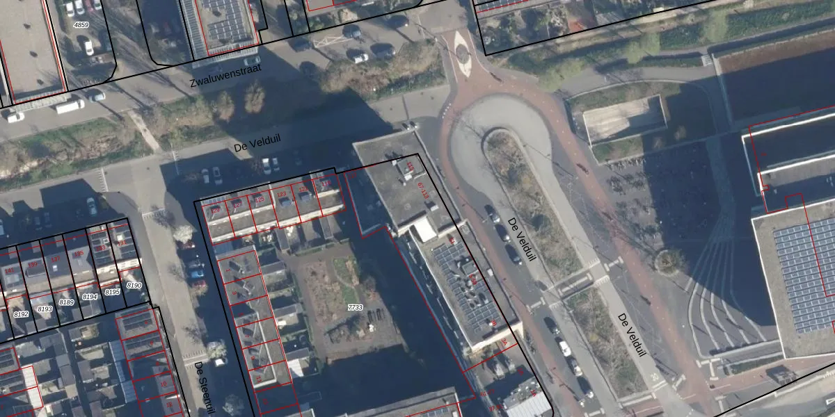 Het perceel waarop De Velduil 79 staat heeft een oppervlakte van 4490 m². Dit is een zeer groot perceel. De perceeloppervlakte wordt geregistreerd door het Kadaster. Gedetailleerde informatie over de maten van dit perceel kunt u vinden in het rapport Kadastrale kaart met maatvoering van De Velduil 79.