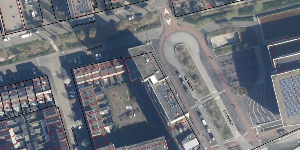 Het perceel waarop De Velduil 83 staat heeft een oppervlakte van 4490 m². Dit is een zeer groot perceel. De perceeloppervlakte wordt geregistreerd door het Kadaster. Gedetailleerde informatie over de maten van dit perceel kunt u vinden in het rapport Kadastrale kaart met maatvoering van De Velduil 83.