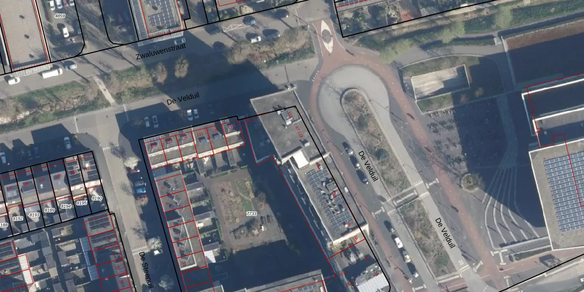 Het perceel waarop De Velduil 99 staat heeft een oppervlakte van 4490 m². Dit is een zeer groot perceel. De perceeloppervlakte wordt geregistreerd door het Kadaster. Gedetailleerde informatie over de maten van dit perceel kunt u vinden in het rapport Kadastrale kaart met maatvoering van De Velduil 99.