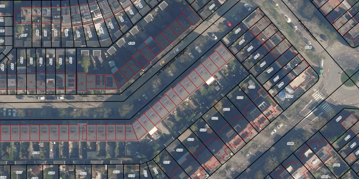 Het perceel waarop De Vergulde Wagen 13 staat heeft een oppervlakte van 6320 m². Dit is een zeer groot perceel. De perceeloppervlakte wordt geregistreerd door het Kadaster. Gedetailleerde informatie over de maten van dit perceel kunt u vinden in het rapport Kadastrale kaart met maatvoering van De Vergulde Wagen 13.