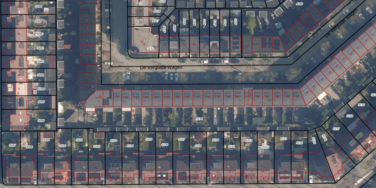 Het perceel waarop De Vergulde Wagen 49 staat heeft een oppervlakte van 6320 m². Dit is een zeer groot perceel. De perceeloppervlakte wordt geregistreerd door het Kadaster. Gedetailleerde informatie over de maten van dit perceel kunt u vinden in het rapport Kadastrale kaart met maatvoering van De Vergulde Wagen 49.