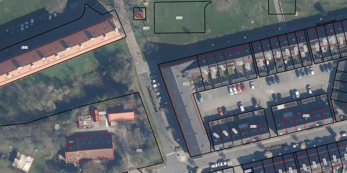 Het perceel waarop Debussystraat 13 staat heeft een oppervlakte van 930 m². Dit is een groot perceel. De perceeloppervlakte wordt geregistreerd door het Kadaster. Gedetailleerde informatie over de maten van dit perceel kunt u vinden in het rapport Kadastrale kaart met maatvoering van Debussystraat 13.