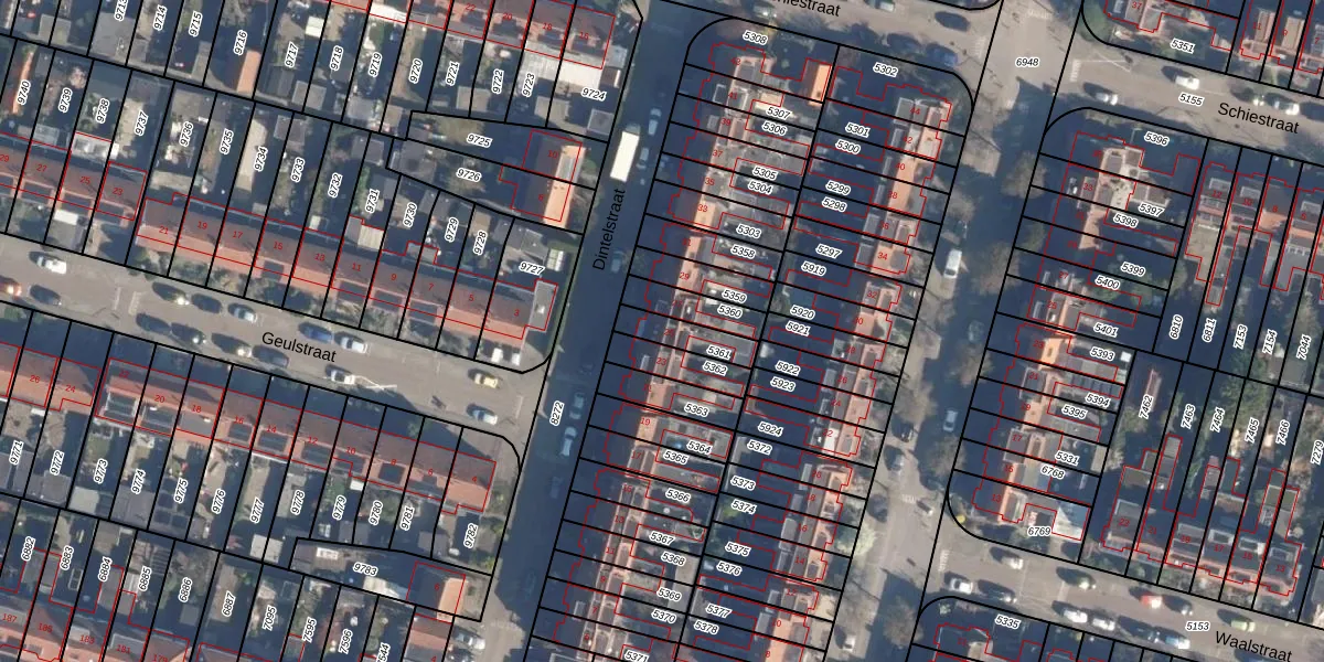 Het perceel waarop Dintelstraat 25 staat heeft een oppervlakte van 98 m². Dit is een klein perceel. De perceeloppervlakte wordt geregistreerd door het Kadaster. Gedetailleerde informatie over de maten van dit perceel kunt u vinden in het rapport Kadastrale kaart met maatvoering van Dintelstraat 25.
