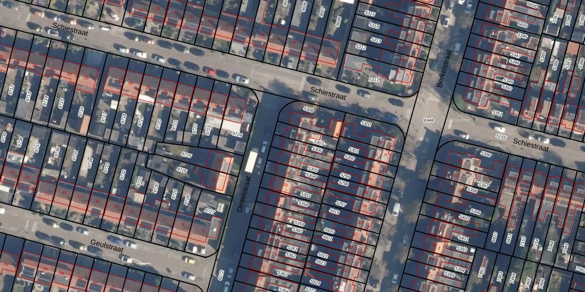 Het perceel waarop Dintelstraat 39 staat heeft een oppervlakte van 98 m². Dit is een klein perceel. De perceeloppervlakte wordt geregistreerd door het Kadaster. Gedetailleerde informatie over de maten van dit perceel kunt u vinden in het rapport Kadastrale kaart met maatvoering van Dintelstraat 39.