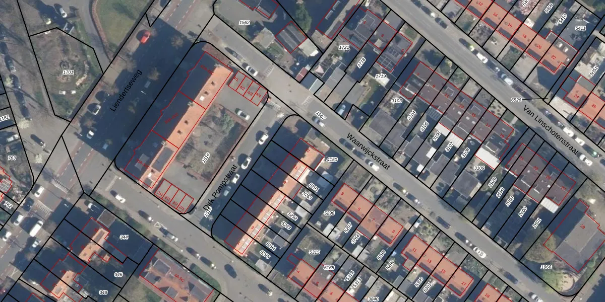 Gebruik de zoekbalk of klik op een perceel voor informatie over de adressen binnen dit perceel.