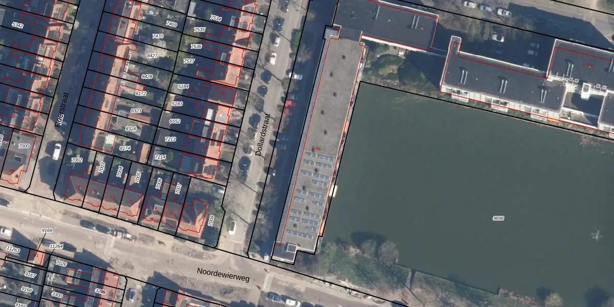 Het perceel waarop Dollardstraat 5 staat heeft een oppervlakte van 9421 m². Dit is een zeer groot perceel. De perceeloppervlakte wordt geregistreerd door het Kadaster. Gedetailleerde informatie over de maten van dit perceel kunt u vinden in het rapport Kadastrale kaart met maatvoering van Dollardstraat 5.