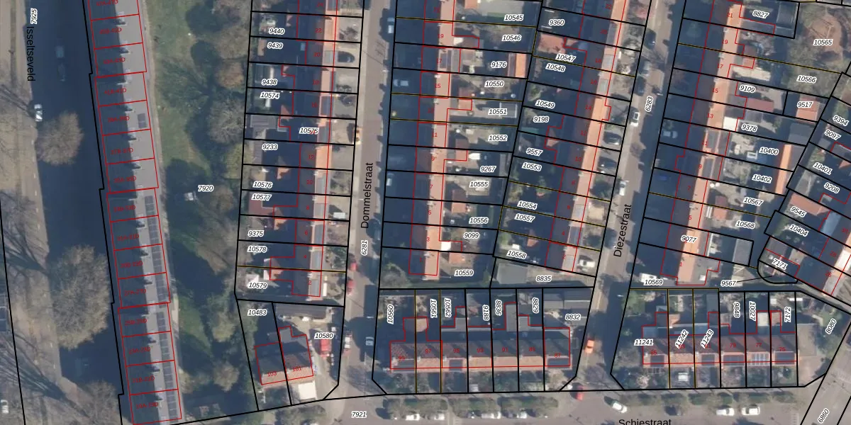 Gebruik de zoekbalk of klik op een perceel voor informatie over de adressen binnen dit perceel.