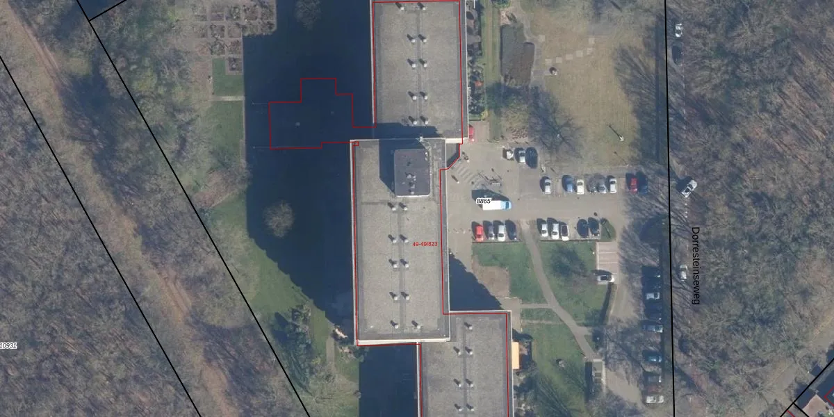 Het perceel waarop Dorresteinseweg 49-310 staat heeft een oppervlakte van 1,8 ha. Dit is een zeer groot perceel. De perceeloppervlakte wordt geregistreerd door het Kadaster. Gedetailleerde informatie over de maten van dit perceel kunt u vinden in het rapport Kadastrale kaart met maatvoering van Dorresteinseweg 49-310.