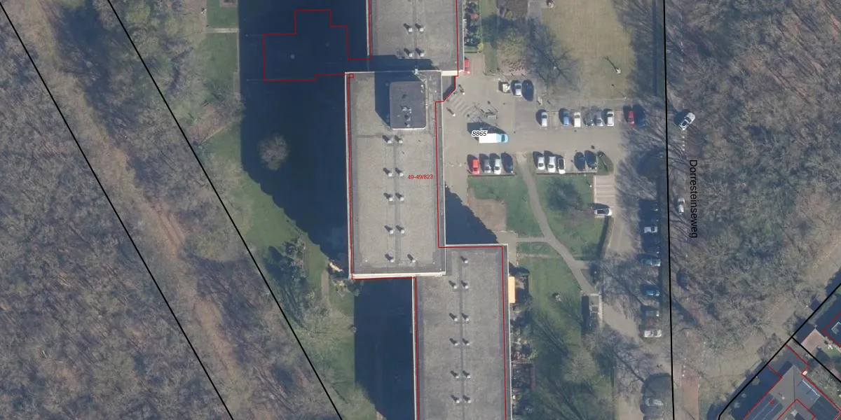 Het perceel waarop Dorresteinseweg 49-233 staat heeft een oppervlakte van 1,8 ha. Dit is een zeer groot perceel. De perceeloppervlakte wordt geregistreerd door het Kadaster. Gedetailleerde informatie over de maten van dit perceel kunt u vinden in het rapport Kadastrale kaart met maatvoering van Dorresteinseweg 49-233.