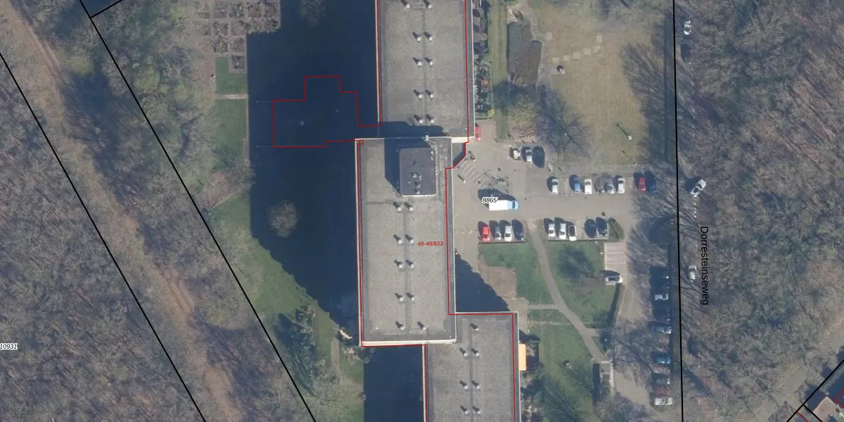 Het perceel waarop Dorresteinseweg 49-311 staat heeft een oppervlakte van 1,8 ha. Dit is een zeer groot perceel. De perceeloppervlakte wordt geregistreerd door het Kadaster. Gedetailleerde informatie over de maten van dit perceel kunt u vinden in het rapport Kadastrale kaart met maatvoering van Dorresteinseweg 49-311.