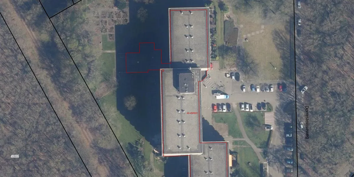 Het perceel waarop Dorresteinseweg 49-703 staat heeft een oppervlakte van 1,8 ha. Dit is een zeer groot perceel. De perceeloppervlakte wordt geregistreerd door het Kadaster. Gedetailleerde informatie over de maten van dit perceel kunt u vinden in het rapport Kadastrale kaart met maatvoering van Dorresteinseweg 49-703.