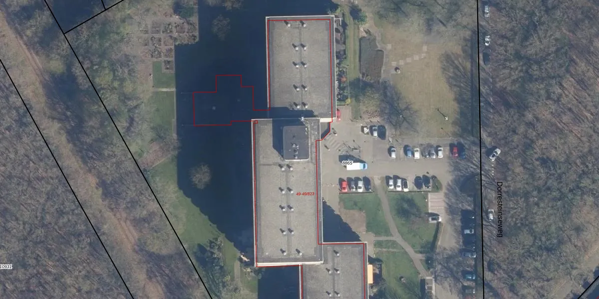 Het perceel waarop Dorresteinseweg 49-302 staat heeft een oppervlakte van 1,8 ha. Dit is een zeer groot perceel. De perceeloppervlakte wordt geregistreerd door het Kadaster. Gedetailleerde informatie over de maten van dit perceel kunt u vinden in het rapport Kadastrale kaart met maatvoering van Dorresteinseweg 49-302.