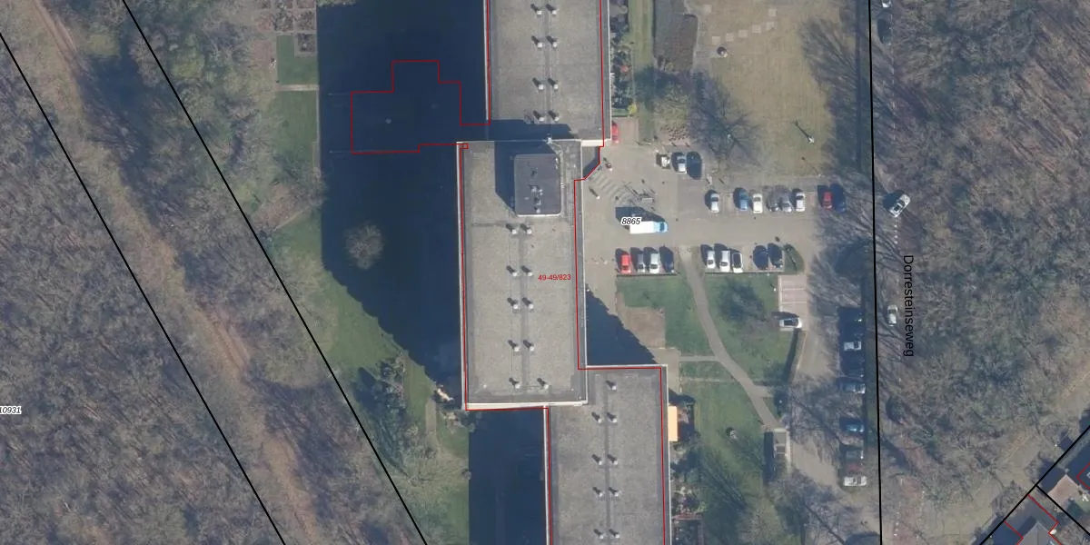 Het perceel waarop Dorresteinseweg 49-321 staat heeft een oppervlakte van 1,8 ha. Dit is een zeer groot perceel. De perceeloppervlakte wordt geregistreerd door het Kadaster. Gedetailleerde informatie over de maten van dit perceel kunt u vinden in het rapport Kadastrale kaart met maatvoering van Dorresteinseweg 49-321.
