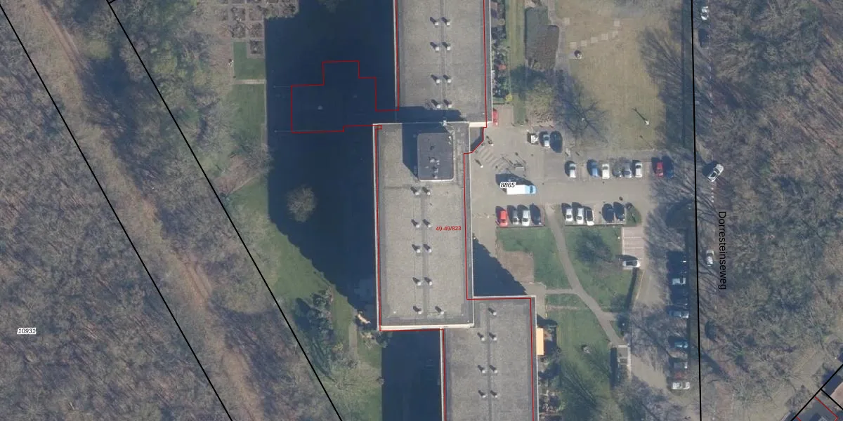 Het perceel waarop Dorresteinseweg 49-616 staat heeft een oppervlakte van 1,8 ha. Dit is een zeer groot perceel. De perceeloppervlakte wordt geregistreerd door het Kadaster. Gedetailleerde informatie over de maten van dit perceel kunt u vinden in het rapport Kadastrale kaart met maatvoering van Dorresteinseweg 49-616.